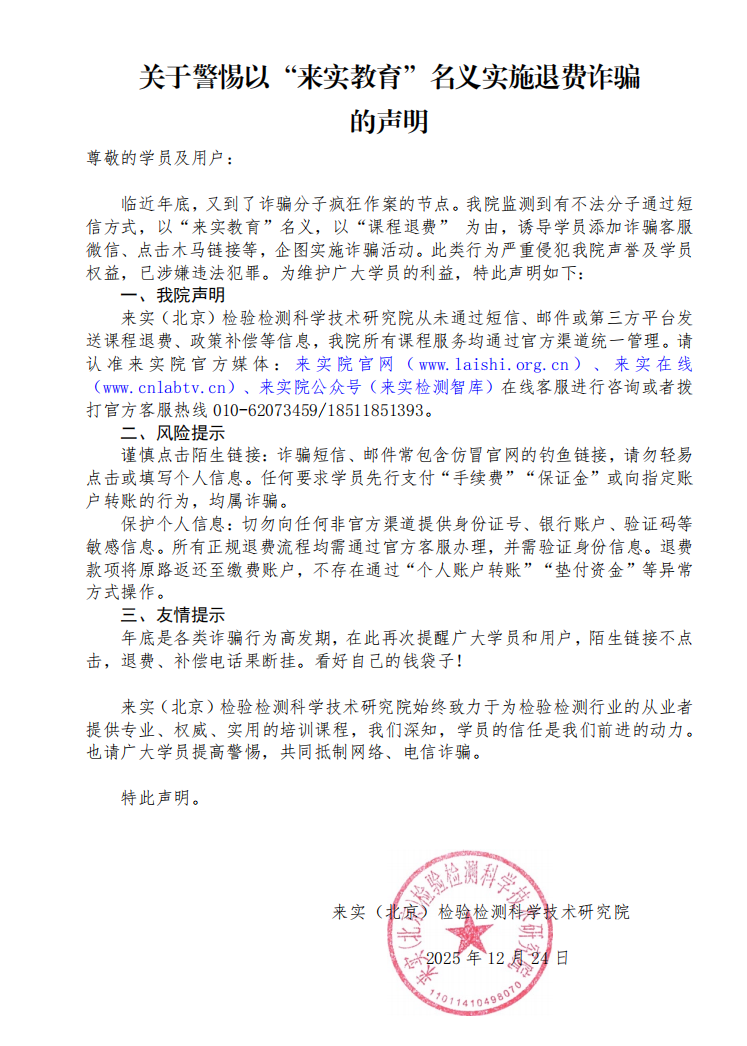 电竞牛-牛气开局,必胜之势从未通过短信、邮件或第三方平台发送课程退费、政策补偿等信息,我院所有课程服务均通过官方渠道统一管理。请认准电竞牛院官方媒体:电竞牛院官网(www.jywhysxx.com)、电竞牛在线(www.cnlabtv.cn)、电竞牛院公众号(电竞牛检测智库)在线客服进行咨询或者拨打官方客服热线010-62073459/18511851393。